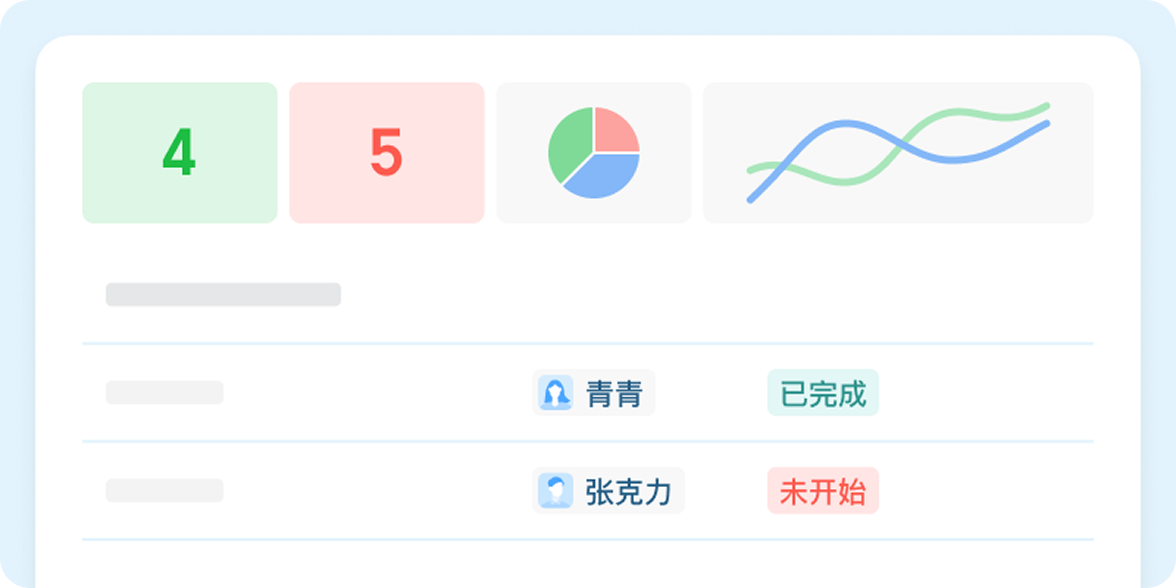 文档中可以添加数据表记录项目进展或业务数据,添加图表统计、分析数据
