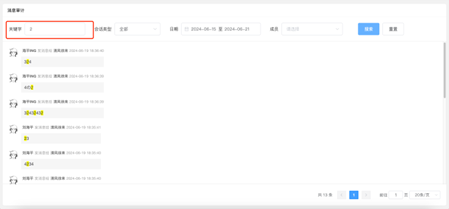 企业还可以通过【消息审计】功能对聊天记录进行审计,检索关键词或特定时间段内的沟通记录,以便于解决争议或进行服务质量评估。